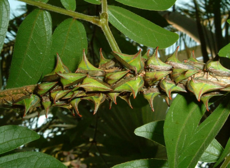 Ну а в целом, горбатки — мирные и безобидные насекомые, несмотря на экстравагантный вид. Всю жизнь они проводят на высоте: кроны деревьев их дом, а сок листьев — пища. Периодически листва становится не только хлебом нашей героини, но домом для её детишек — насекомое откладывает на ней яйца.