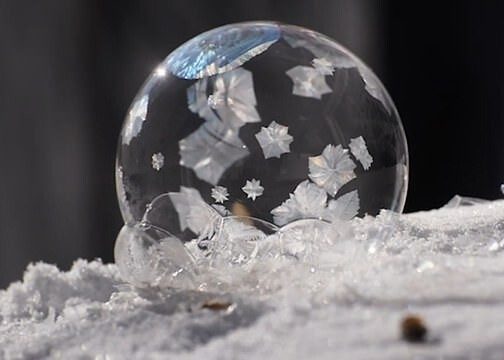 Канадская художница и фотограф Хизер Хинэм у себя дома в Виннипеге при температуре минус 28 сумела не только заморозить мыльные пузыри, но и заснять этот процесс на видео. Результат она выложила в социальные сети, вызвав всеобщий восторг. За считаные минуты мыльный пузырь превратился в ледяной шар!