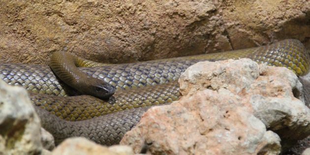 Действительно, самая ядовитая из сухопутных змей в мире живёт в Австралии. Это тайпан Маккоя, которому достаточно сделать один «кусь», чтобы завалить 100 человек.