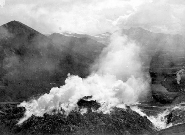 Извержение вулкана Новарупты, которое началось 6 июня 1912 года, стало монументальным событием. За 60 часов было высвобождено более 13 кубических километров лавы – эквивалент 573,2 миллиона тонн в час. В Кадьяке, примерно в 160 километрах от вулкана, на земле скопилось более 30 сантиметров пепла. Охлаждённый слой пепла, окружающий вулкан, образовал «Долину десяти тысяч дымов», создав дымящиеся фумаролы (отверстия в земле, откуда выходит газ или водяной пар). Этот инцидент даже спровоцировал появление атмосферной дымки, которая, как утверждалось, снизила летнюю температуру. В целом это было крупнейшее извержение вулкана 20-го века, и оно получило шесть баллов по шкале вулканической активности (ШВА), измеряющей мощность извержения (один балл – наименее мощное извержение, восемь баллов – самое мощное).