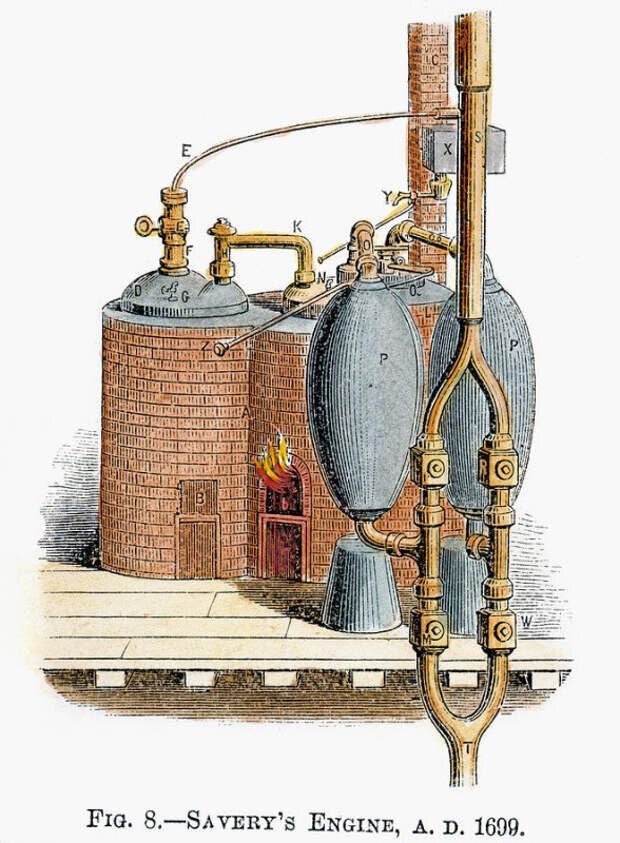 На этом же принципе были построены в 1705 году вакуумные паровые машины Томаса Севери и Томаса Ньюкомена для выкачивания воды из копей.