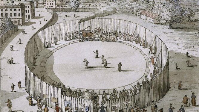 Кольцевая дорога-аттракцион для демонстрации паровоза Тревитикарисунок Томаса Роулендсона