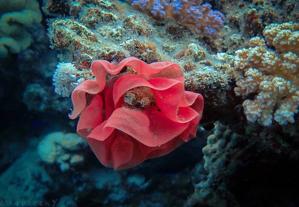 Когда оплодотворение завершено, «самка» откладывает витую ленту из тысяч яиц в форме замысловатого цветка. Там, где раньше полыхали алые лоскуты, теперь расцветают прекрасные соцветия, столь же ядовитые, сколь и их создатели.