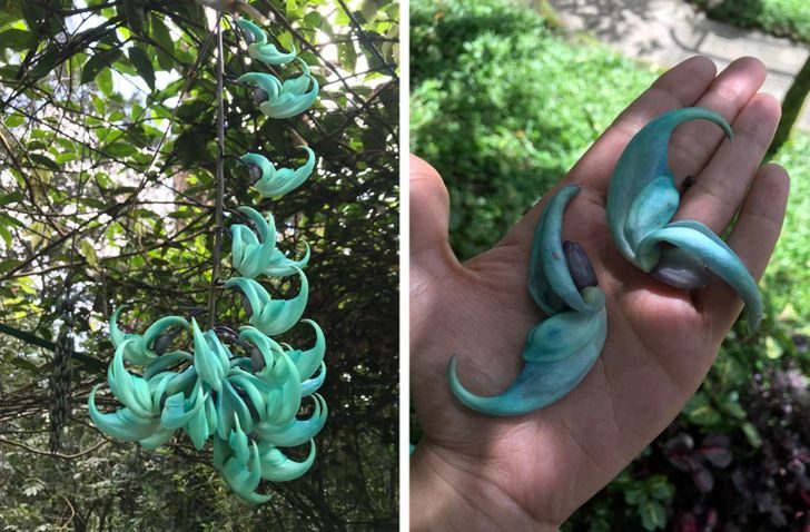 Лучше не трогайте растения, о которых ничего не знаете. Это нефритовая виноградная лоза, она находится на грани исчезновения в дикой природе. А еще растения бывают ядовитыми. © GrnHrtBrwnThmb
