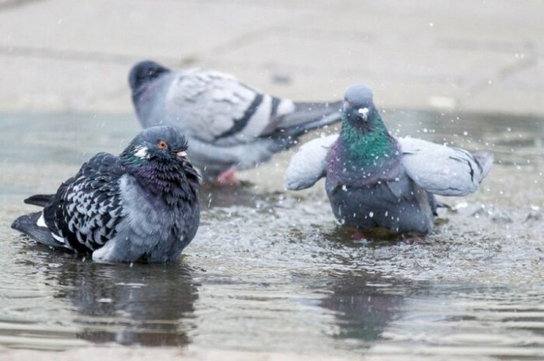 Только идет дождь не с неба. Его появлению мы обязаны голубям. Дело в том, что пернатые уж слишком сильно любят воду. Только в такие моменты от них лучше держаться подальше. Отыскав источник воды, птичка окунается, после чего взъерошивает свои перья, растопырив их в разные стороны. И ему плевать, что брызги летят на всех, кто находится в непосредственной близости. Забрызгано будет все. Кстати, для принятия водных процедур ей достаточно и небольшой лужицы на асфальте.