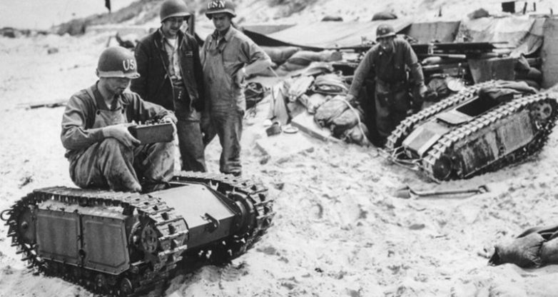 Немцы активно работали над созданием разного рода дистанционно управляемых машин. И одним из самых оригинальных примеров такого аппарата оказался легкий носитель зарядов Sd.Kfz.302 Goliath, который также называют самоходной миной. Его предназначение — уничтожение техники противника. Среди его достоинств — надёжность и невысокая стоимость производства, поэтому его и использовали в качестве робота-камикадзе. При собственной массе менее 400 кг, Goliath мог довезти до места назначения до 100 кг взрывчатки. Вот только управлялся он по кабелю длиной до 700 метров, поэтому не все мины доходили до нужной точки.