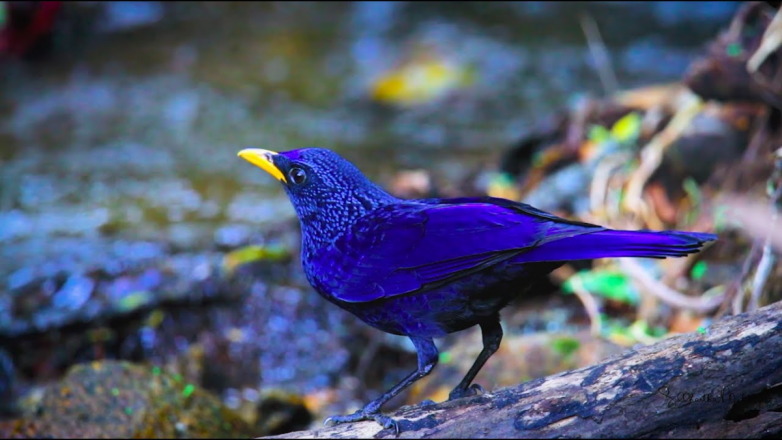 В зависимости от ареала есть два подвида лиловых дроздов: у одного клюв желтый, у другого черный.Дрозда хоть и зовут лиловым, но это не совсем так. Самая счастливая птица окрашена в насыщенный темно-синий цвет в серебристую крапинку. Яркое великолепие переливается на солнце от ультрамаринового до иссиня-чёрного. А почему бы и не блистать, когда берешь от жизни все!
