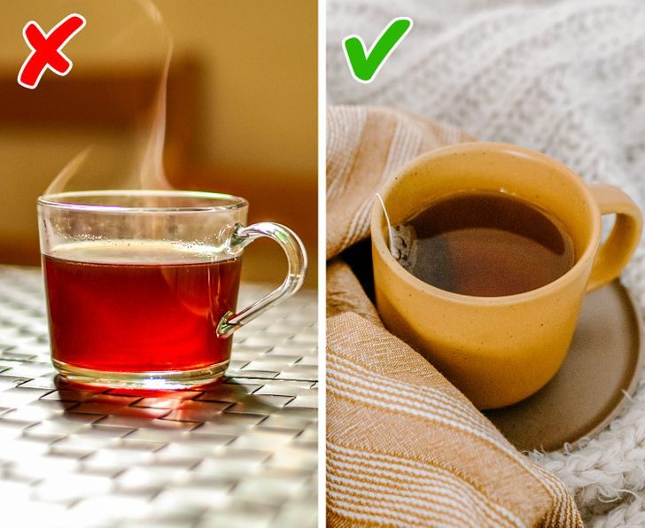 И хотя после мороза многие с радостью выпьют чашку горячего чая, это не самая хорошая идея. Специалисты говорят, что, когда мы пьем горячее, мы чувствуем тепло, хотя на самом деле можем, наоборот, охладить наше тело, потому что от горячего мы потеем. Лучше отдать предпочтение теплому напитку.