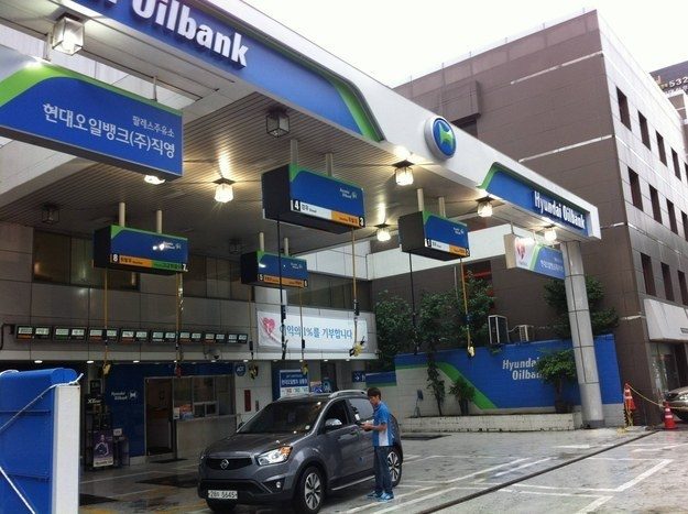 АЗС, на которой шланги свисают с крыши, потому неважно, с какой стороны бензобак