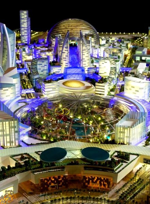 А не так давно давнюю мечту писателей-фантастов решили воплотить в жизнь Дубае. Новый населенный пункт под куполом позиционируется как место с возможностью полного климат-контроля и постоянного кондиционирования воздуха. Планируется, что этот город станет настоящей туристической жемчужиной Объединенных Арабских Эмиратов: там будут располагаться отели, театры, рестораны и торговые центры.
