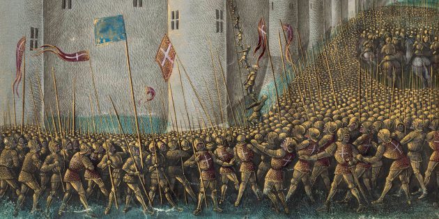 Осада крестоносцами Антиохии. Миниатюра Жана Коломба из книги Себастьена Мамро «Походы французов в Утремер», XV век