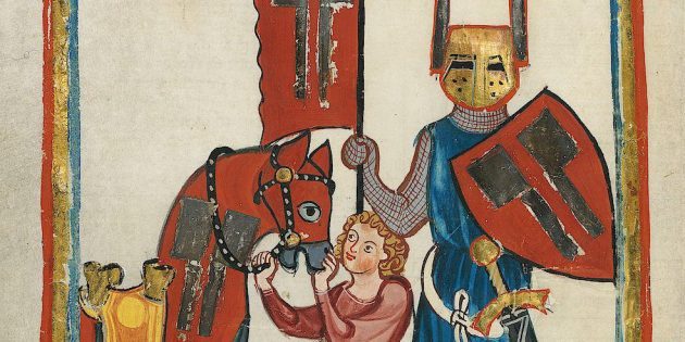 Вольфрам фон Эшенбах и его оруженосец. Codex Manesse, XIV век