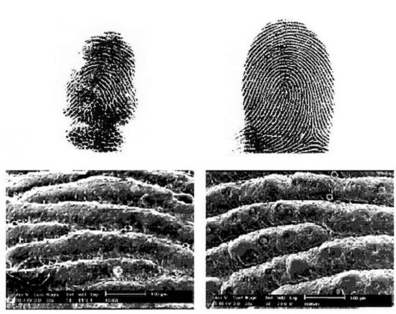 Отпечаток пальца коалы по сравнению с отпечатком человека