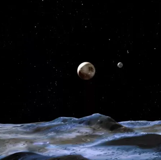 Вид на Плутон с одного из спутников карликовой планеты в представлении художника