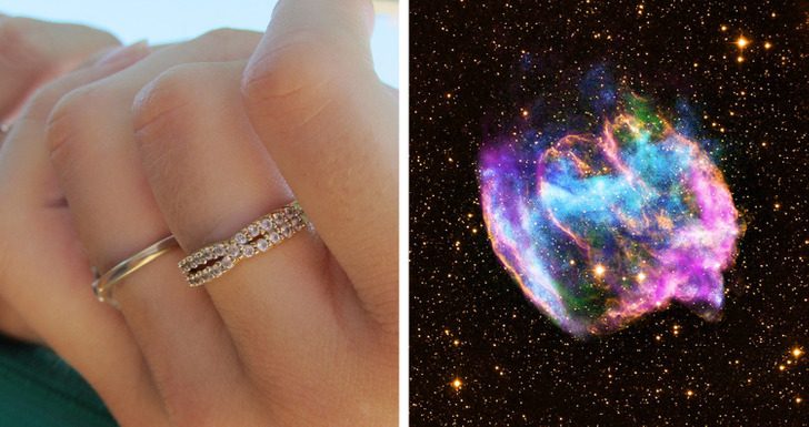 Раньше считалось, что все элементы тяжелее железа образовались от слияния нейтронных звезд. Однако, по последним исследованиям, взрывы сверхновых тоже ответственны за создание таких химических элементов. И в процессе этого образуется больше тяжелых элементов, пусть и происходит это реже. Таким образом, все золото, даже самое обычное кольцо или сережки, которые мы носим, образовано во время масштабных космических событий.