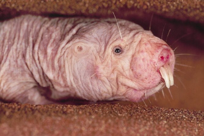 3. Голый землекоп — легендарный грызун, который не боится боли, не стареет и живет примерно 30 лет. Наука возлагает на землекопа большие надежды: возможно, этот странный зверек поможет человечеству победить процессы старения.