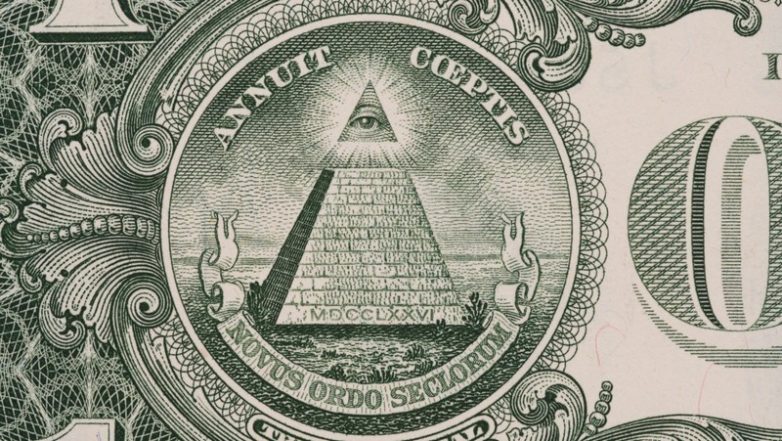 Треугольник с глазом имеет христианскую подоплеку. Сама фигура символизирует Святую Троицу, то есть, Отца, Сына и Святого Духа, а сам глаз американцы называют божьим. Надпись «NOVUS ORDO SECLORUM» внизу сооружения эксперты переводят как «Новый закон на века», а дата MDCCLXXVI символизирует новую эпоху для государства, которая стартовала в 1776 году с момента подписания знаменитой Декларации о независимости. Кроме того, масонский треугольник является одним из элементов государственной печати Америки, предназначенной для подтверждения законности правительственных документов. Соответственно, изображение этого символа на штатовском долларе вполне логично.