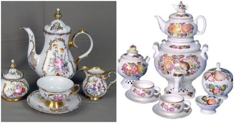 Итак — главное отличие фарфора от фаянса — это состав смеси. Фарфор более тонкий, звенящий, твердый как стекло, просвечивает на свет (относится только к посуде), звенит при постукивании; фаянс толще, он пористый, рыхлый, звук глухой. На фаянсе часто, со временем, появляется так называемый цек (кракелюр) — сеть мелких трещин, для фарфора это недопустимо.