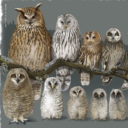 Филин крупнее, размах крыльев больше, летает, в отличие от совы, шумно. Пучки перьев на голове, так называемые ушки, практически главное отличие — у филина есть, у совы нет. Исключение составляет лишь ушастая сова (номер 5 на картинке — первый филин, остальные совы и сычи)