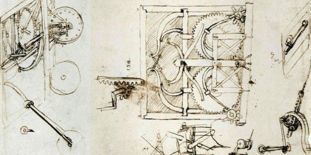 Какое они должны были развивать мускульное усилие, Леонардо в расчёт особо не брал. Конечно, ведь он инженер, стратег и создаёт общую концепцию, а более частными деталями пусть занимаются люди с мышцами.
