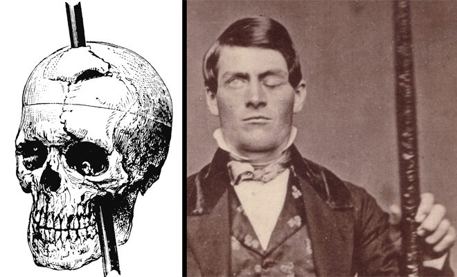 Финнеас Гейдж — один из первых людей, на котором хирурги рискнули провести полноценную нейрохирургическую операцию. В 1840 году, подрывник Гейдж работал на вермонтской шахте и не рассчитал время горения шнура. Снаряд взорвался в 20-ти метрах от Финнеаса, зацепив взрывной волной стальной прут. Он назквозь пробил голову несчастного. Хирурги сумели вытащить из мозга Финнеаса целых тридцать деформированных осколков. Спустя полгода, Гейдж вернулся к нормальной жизни, хотя и страдал от частых головных болей.