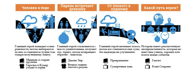На самом деле идея универсальных сюжетных архетипов не нова – в конечном итоге большинство историй имеют простые и понятные формы. Настолько, что Воннегут сформулировал их в одном элегантном предложении: