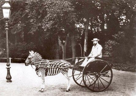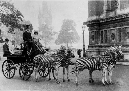 В конце 19 века зебр активно дрессировали возить повозки, 1898