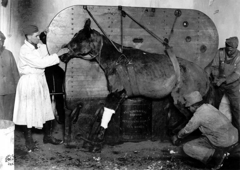 Лошадь во время лечения после огнестрельного ранения, Франция