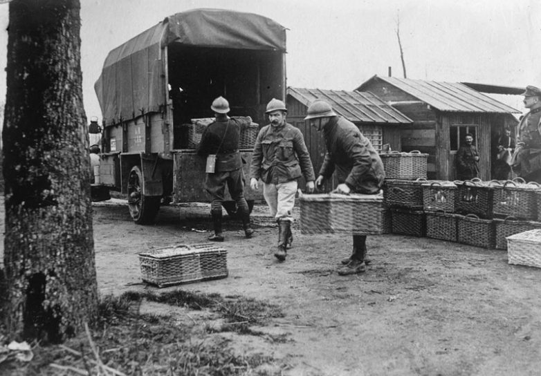 Британские солдаты отправляют записку через почтового голубя, 1917