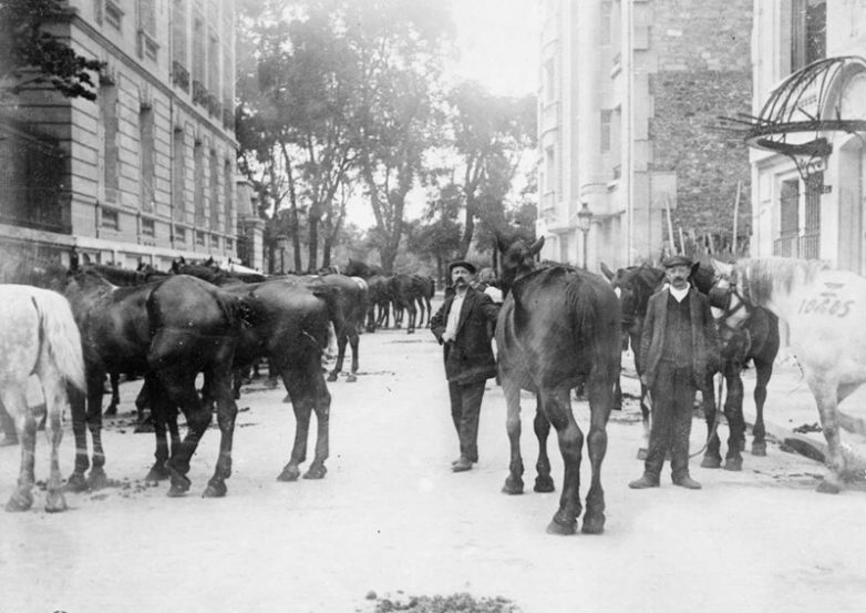 Лошади, собранные у фермеров для военных действий, Париж, 1915