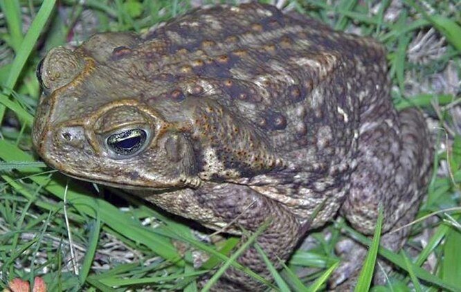 Жаба-ага, одна из крупнейших жаб мира, умеющая метко плеваться опасным психоделическим ядом. Кроме галлюцинаций, он также вызывает обильное слюноотделение, конвульсии и рвоту – далеко не самое приятное состояние.