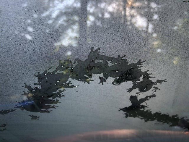 Вот какой след оставляет лягушка, которая решила ночью поскакать по автомобилю