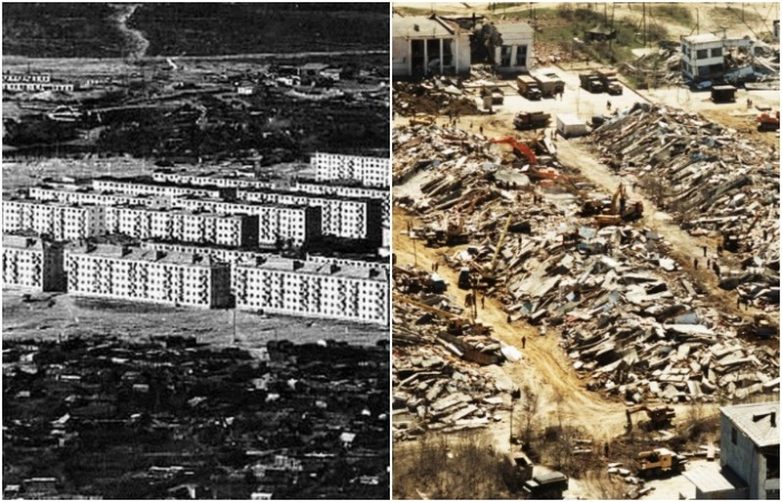 10. Спитак, Армянская ССР. Полностью разрушен землетрясением силой 10 баллов 7 декабря 1988 года. В результате землетрясения в Спитаке и других населенных пунктах погибло, по меньшей мере, 25 тысяч человек (по другим данным, 45 тысяч), 140 тысяч стали инвалидами, 514 тысяч человек остались без крова. Землетрясение вывело из строя около 40 процентов промышленного потенциала Армянской ССР.