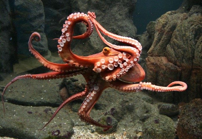 Осьминоги могут объединяться с другими рыбами в «стаи», чтобы увеличить шансы на успешную охоту. Дабы первым схватить жертву, осьминоги своими щупальцами отталкивают и бьют «компаньонов». Однако иногда это происходит даже без каких-либо причин, как утверждают ученые. В некоторых случаях столь злобное поведение можно объяснить как «воспитательные меры» для будущей охоты, чтобы рыбы не совались на место осьминога.