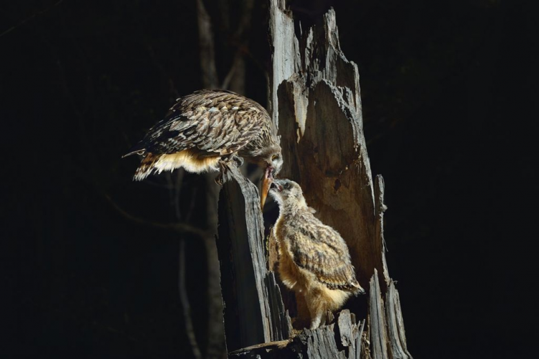Но вернемся к рыболовству, ибо филин в этом деле настолько преисполнился, что использует сразу все техники, похожие на другие птичьи приемы. На охоту, точнее, рыбалку, филин выходит, как и большинство сов, — под покровом ночи.