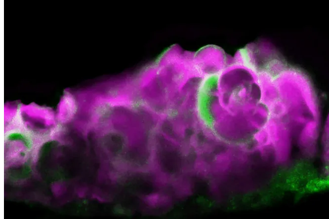 Возрастную дегенерацию желтого пятна вызывает кальций, наподобие того, который содержится в зубах. Этот гидроксиапатит (на снимке он розового цвета) и белок амелотин (зеленого цвета) образуют отложения на задних стенках глазных яблок, что приводит к постепенному и значительному ухудшению зрения с возрастом.