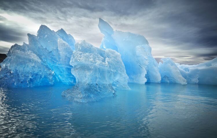 Весь обьем льда находиться не в водах океанов, на суше. Айсберги не в счет.