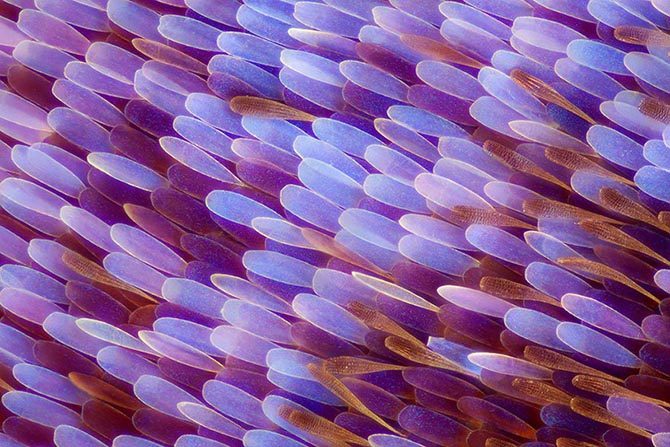 Бабочки и некоторые виды мотыльков — признанное воплощение природной красоты. Благодаря биохимику и фотографу Линдену Гледхиллу мы имеем возможность рассмотреть их великолепие на макроуровне. Фотографии мастера представляют собой многократное увеличение крылышек насекомых с их неповторимым окрасом и текстурой.