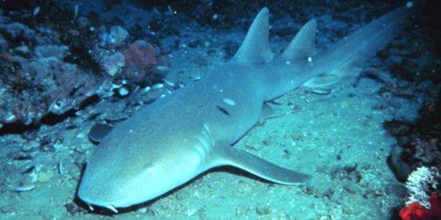Акула‑нянька отдыхает, лёжа на дне