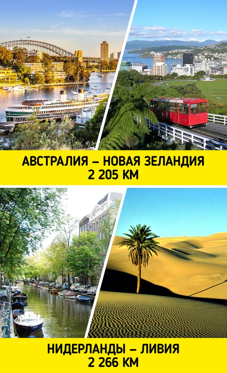 Расстояние между Новой Зеландией и Австралией примерно такое же, как расстояние между Нидерландами и Ливией