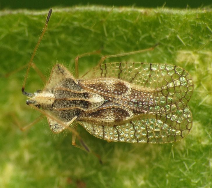 Крылья баклажанового кружевного жука выглядят как витраж