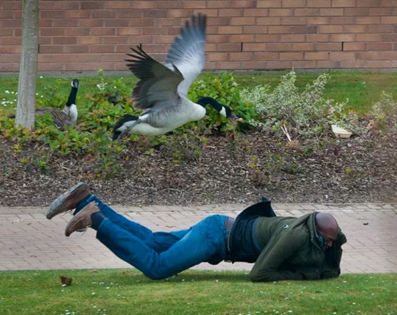 Но где бы канадский гусь ни обитал, его отличает ничем не замутненная ненависть к роду людскому. Если вы просто оказались рядом — он нападёт, потому что может. Ему не нужны аргументы, он просто будет бить вас крыльями и щипать, ведь это его пруд, его район, его правила!