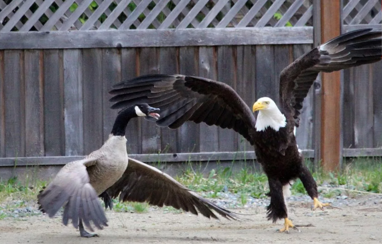 Добро пожаловать в Северную Америку, где канадский гусь aka канадская казарка вдохновился Палаником и исповедует принципы Бойцовского Клуба. Обладая невзрачным окрасом офисного работника, эта птица таит в себе дух настоящего воина. Веса в 6 кило и размаха крыльев почти в два метра вполне достаточно, чтобы зашугать человека.