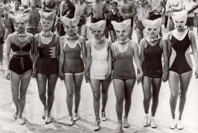 Конкурс красоты. Лица у женщин закрыты, учитывается только красота тела и ног. Лонг Айленд, 1935 год.