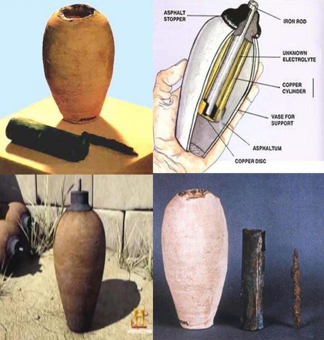 До изобретения электричества первыми фору дали месопотамцы. В 30-х годах XX века на археологических раскопках под Багдадом был обнаружен загадочный артефакт, получивший название «Багдадская батарейка». Он имел следующий вид: 13-сантиметровый сосуд, через горлышко которого был проведен железный прут со следами коррозии. Внутри сосуда находился медный цилиндр, а внутри цилиндра — железный стержень.Исходя из строения находки ученые предположили, что это древняя батарейка, которая могла создать электрический ток напряжением в 1 вольт.