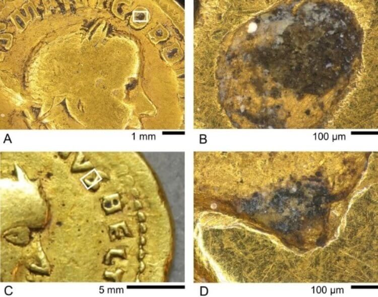 Исследователь Пол Пирсон (Paul Pearson) и его коллеги изучили монету под мощным микроскопом и нашли на ней царапины. Они возникли в результате естественного износа во время использования — вряд ли кто-то мог настолько хорошо имитировать износ. Даже в самых мелких царапинах на монете были обнаружены кусочки земли, то есть она пролежала в земле очень много лет. По расчетам ученых, он был отчеканен в 260 году нашей эры.