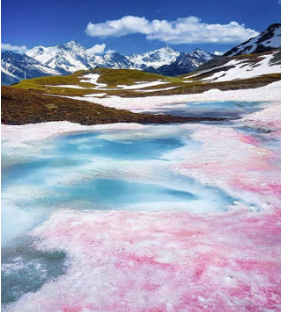 Как и лед, снег, если он чистый, имеет немного голубоватый или зеленоватый оттенок. Но как объяснить снег розового цвета, о котором все чаще сообщают исследователи из разных стран? Летом 2020 года, например, на альпийском леднике Презена, что на севере Италии, заметили необычный розовый снежный покров. При этом снег на некоторых участках имел как светлый оттенок, так и более насыщенный красный.