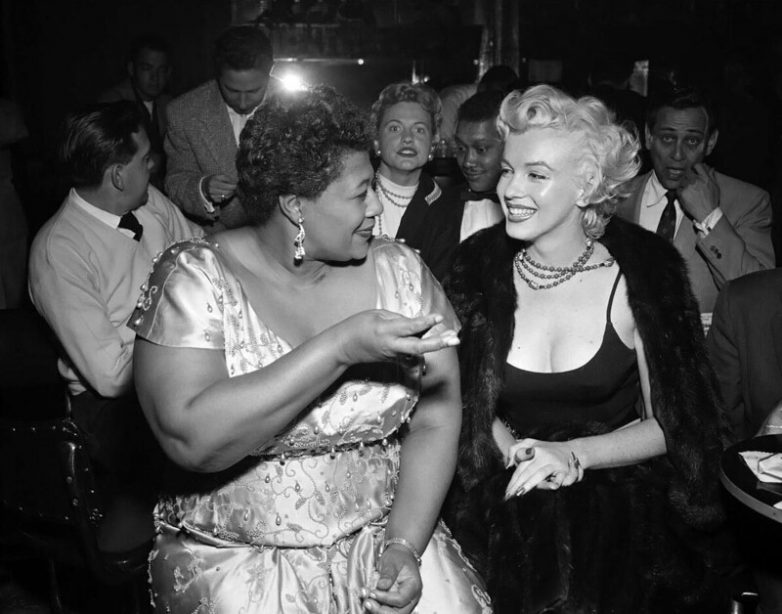 Мэрилин Монро с Эллой Фитцджеральд в «Мокамбо», популярным в свое время голливудском ночном клубе, 1955 год