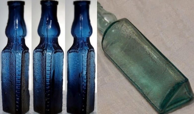В конце XIX века в России начали массово производить уксусную эссенцию. Продавалась она в обычных стеклянных бутылках. Конечно, на этикетке было написано, что это уксусная кислота, но, если ночью захотелось для хорошего сна выпить 50-100 г настойки, а на кухне нет света, да ещё если читать не умеешь, то очень легко перепутать бутылки — глотнул не глядя и уснул вечным сном. Количество отравлений росло вместе с продажами эссенции. И тогда производители запретного напитка придумали специальные трёхгранные бутылки с насечками. Благодаря необычной форме бутылки в полной темноте можно было определить, что пить можно, а что нельзя. Насечки же были нужны, чтобы отмерять нужное количество эссенции для разбавления.