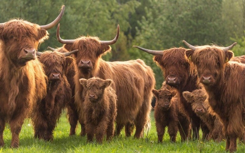 Корова появилась на севере Шотландии, которому и обязана своей красотой. У хайленда длинная шерсть, которая служит защитой от холода. Породу охотно разводят и в других странах – маленькие телята напоминают умилительные плюшевые игрушки. Да и по характеру эта корова просто душка: спокойная, мягкая, да и в уходе неприхотливая.